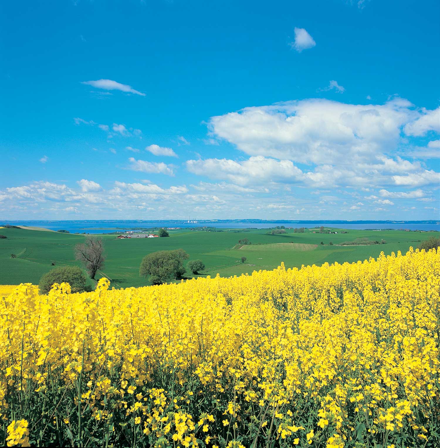 Rape fields along the fjord bank