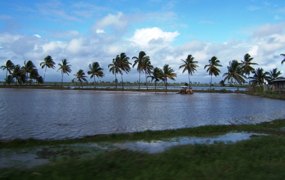 Tractor in the rice fields