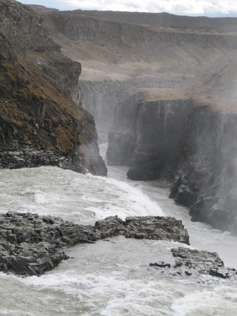 From the Old Harbour we travelled by mini-bus and bike trailer to Gullfoss, the queen of Icelandic waterfalls, where we were to start our ride. The journey to Gullfoss traverses the surreal volcanic landscape, which is like no other. Along the way, Stefan provided engaging stories and history updates. At Gullfoss (Golden Falls) there are convenient staircases allowing those brave or foolish enough to look over the edge and revel in the sheer beauty.