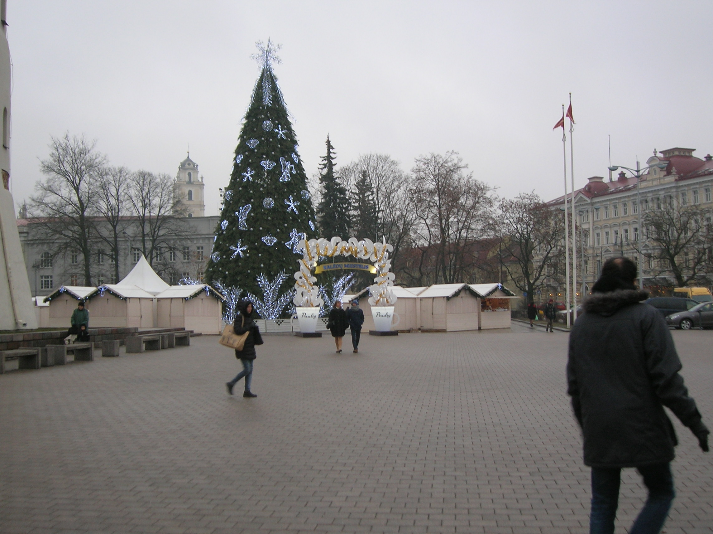 After a short walk on narrow pavements alongside cobbled streets, we came to the Cathedral Square. Both the Cathedral itself and the unusually separate Belfry were thoroughly renovated about 8 years ago. It is the main Roman Catholic Cathedral of Lithuania. Just to the right of the Cathedral was a picturesque Christmas Market with lots of wooden kiosks selling some very interesting items, most of which were the result of local crafts. In the distance, behind the Cathedral, we could see the Gediminas' Tower which is the only remaining part of the Upper Castle in Vilnius.