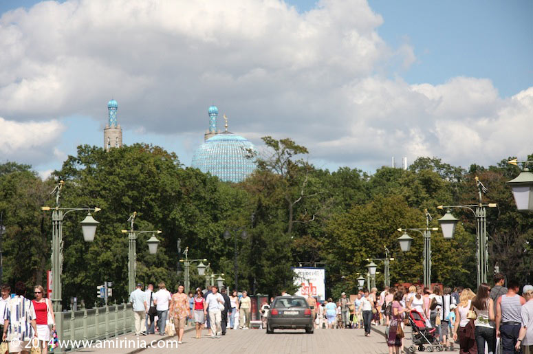 Many mosques and churches were demolished during the communist regime. However, the Saint Petersburg mosque, which was built in 1920, has survived. It is a large place of worship, which can accommodate over five thousand worshipers. Before I entered the Mosque, I saw a man standing by the fence holding it firmly, moving his head murmuring quietly as if he was praying. I could not approach him as he was engaged in his own peaceful world. I was astonished to see someone performing his prayers. It is unlike a Muslim to pray standing outside the gates of a Mosque.
