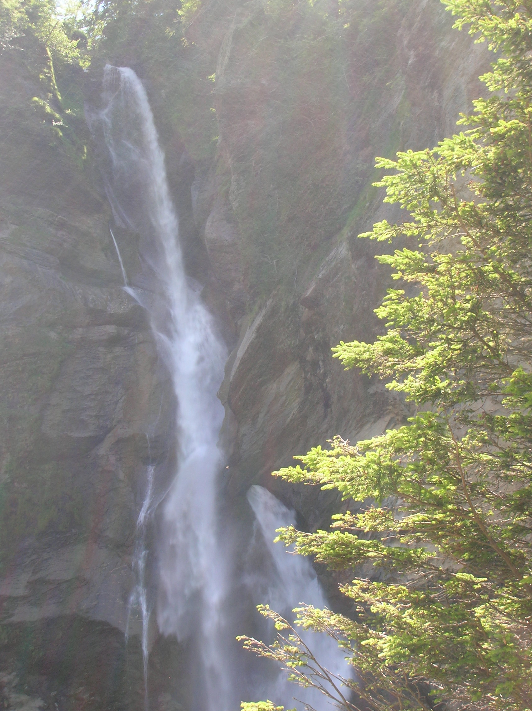Now, clue number two. A short drive from Meiringen and a ride on a funicular railway brings me to the Reichenbach Falls. This impressive and famous waterfall is approximately 120 metres high and is enhanced by a considerable amount of spray and mist. You can take the difficult walk to the top of the falls but it is much more impressive when viewed from below.