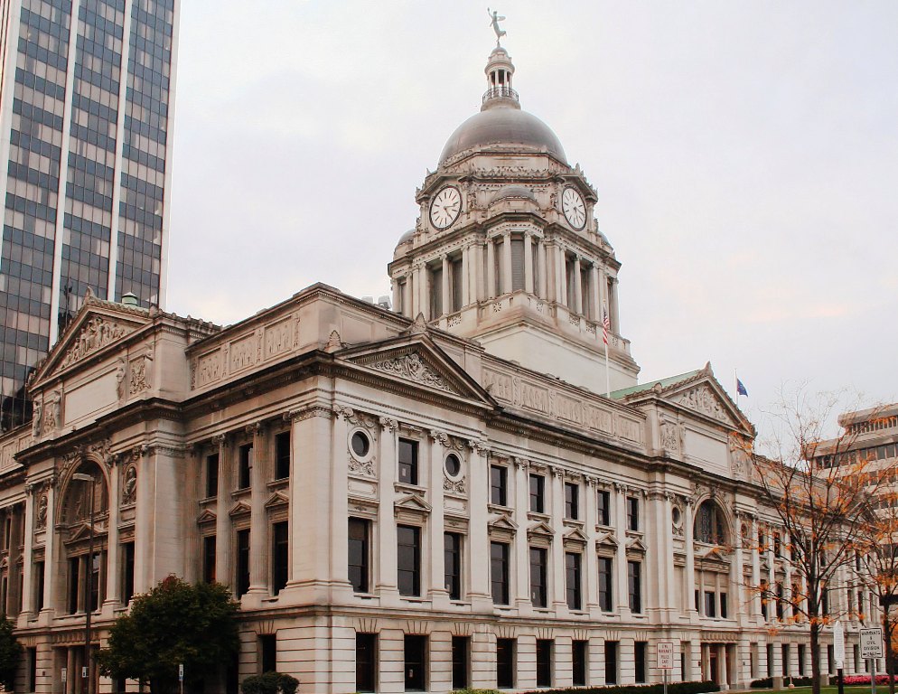 Monument Circle marks the city centre and above it is the Soldier and Sailor Monument, the Beaux Arts Obelisk.