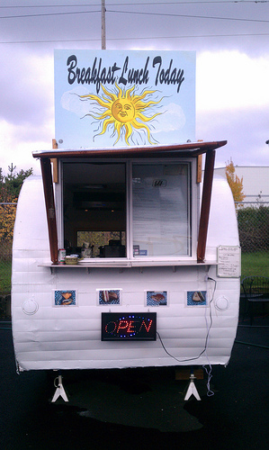 In a trailer that reminds one of the 50′s or maybe a boardwalk vendor, The Rock House Grill creates some great food to sate your needs- morning, noon or night. At Cartlandia out in east Portland, James has opened his shop after years of working in restaurants and honing his skills at the grill. He’s worked in small bars, been a line cook and even catered for concerts. If you can manage a crowd of rowdy rockers, you’ve proven you can man the grill.