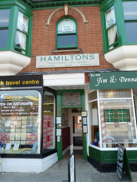 Hamilton’s Tea Rooms and Restaurant gives you an upstairs view over Hamilton Road while enjoying simple but excellent food, well cooked and served by the lovely ladies. (http://www.hamiltons-tea-rooms.co.uk).