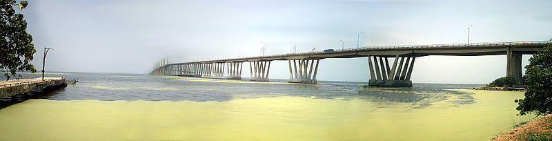 General Rafael Urdaneta Bridge is located at the outlet of Lake Maracaibo.