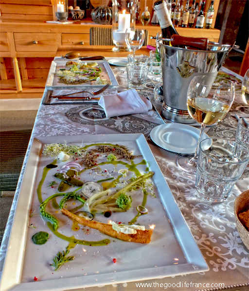 I talk to fellow guests Michael and Gail Kawaharada from Hawaii and they tell me this is their third visit and they absolutely love it here. Michael says it's a very special place. The meal is delicious and accompanied by wines from the area, served in a beautiful dining room that leads onto the gardens. The hotel is romantic, tranquil, luxurious and beautifully renovated; an ancient stone spiral staircase leads up through the centre of the house and there is lots of light from the huge windows which overlook the magnificent gardens.