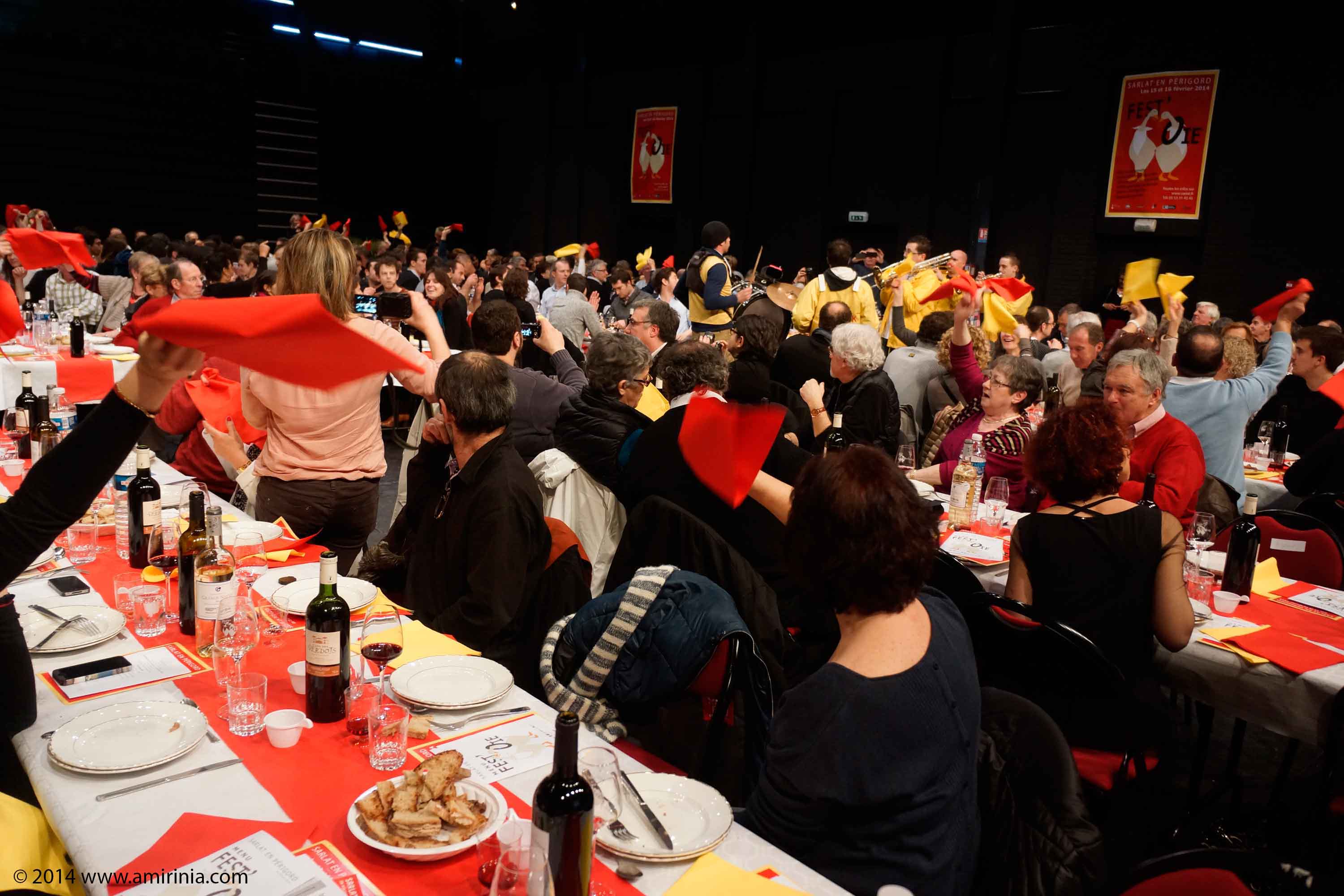 The festival is supported by several days of activities in the cobbled market square where there were hosts of stalls selling local produce, many of which are goose orientated. On the Saturday evening ‘La Place de la Liberté’ (the market square given it's proper name) is set up into drinking and eating areas under heated tents with fresh cooked goose and other edible delights and a fine selection of excellent local Bergerac wines. To taste these delicacies and sip the wine you need to buy tickets. The celebrations were accompanied by some robust brass & drum music that got the now relaxed crowd joining in.