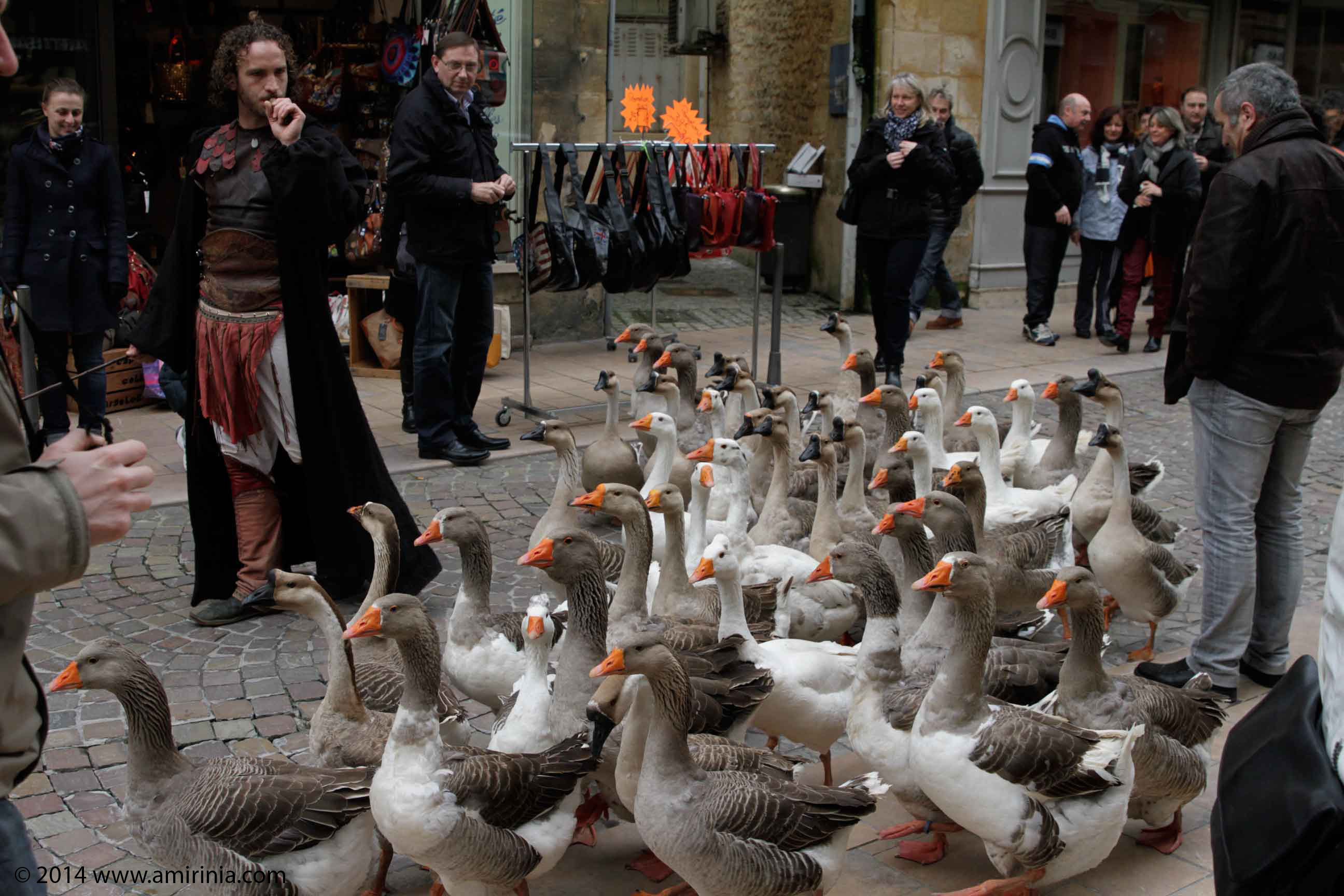 The fiestas of San Fermin are celebrated in Pamplona, in the region of Navarra, every year from the 6th to the 14th of July. They have become internationally famous because of the running of the bulls. In south west France in the medieval city of Sarlat they have the running of the geese. This feather fluttering spectacle occurs annually, this year on the 15th and 16th of February, and celebrates the many qualities of this of this fine web-footed fowl.