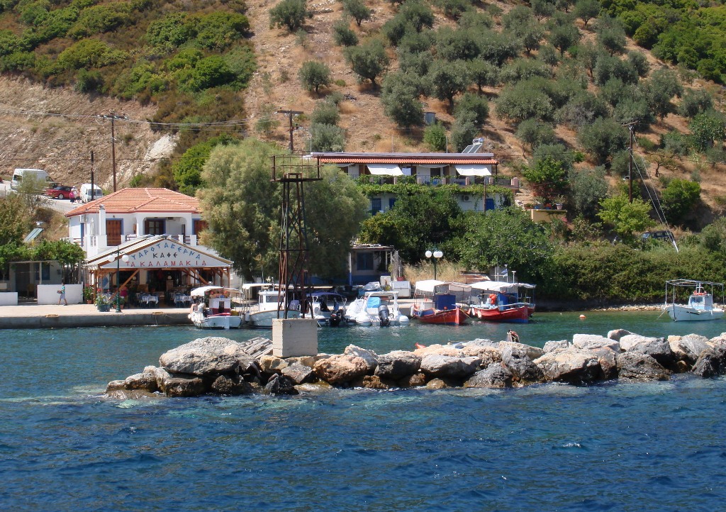 Kalamakia is even quieter than Stenivala, and is another tiny fishing harbour with only a few tavernas. The village is popular for its top quality fresh fish, especially the lobster that is served in the waterside tavernas. There is no bus service to Kalamakia from Patitiri, so you’ll need to find your own transport or hire a taxi if you want to see the village. One of the recommended island day trips takes in Kalamakia and Agios Dimitrios. Kalamakia only has a small beach but the beach at Agios Dimitrios is one of the best on the island, so an ideal combination would be to stop for a swim there, and finish off with a meal in Kalamakia.