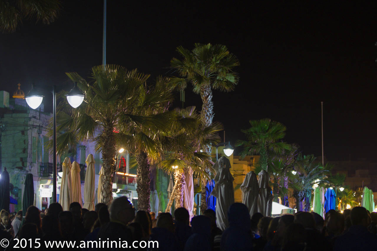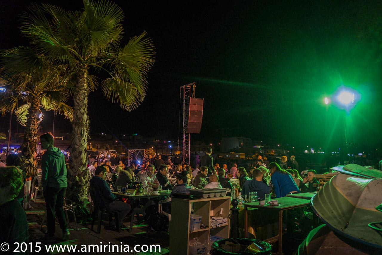 It was a great experience for me to watch these spectacular fireworks, particularly in the village of Marsaxlokk. Here they held firework exhibitions, and both locals and tourists gathered on the streets, listening to musicians and children got their faces painted and played games along the seafront. Maltese traditional nougat was on sale and restaurants brought their barbecue stands into the middle of the promenade.