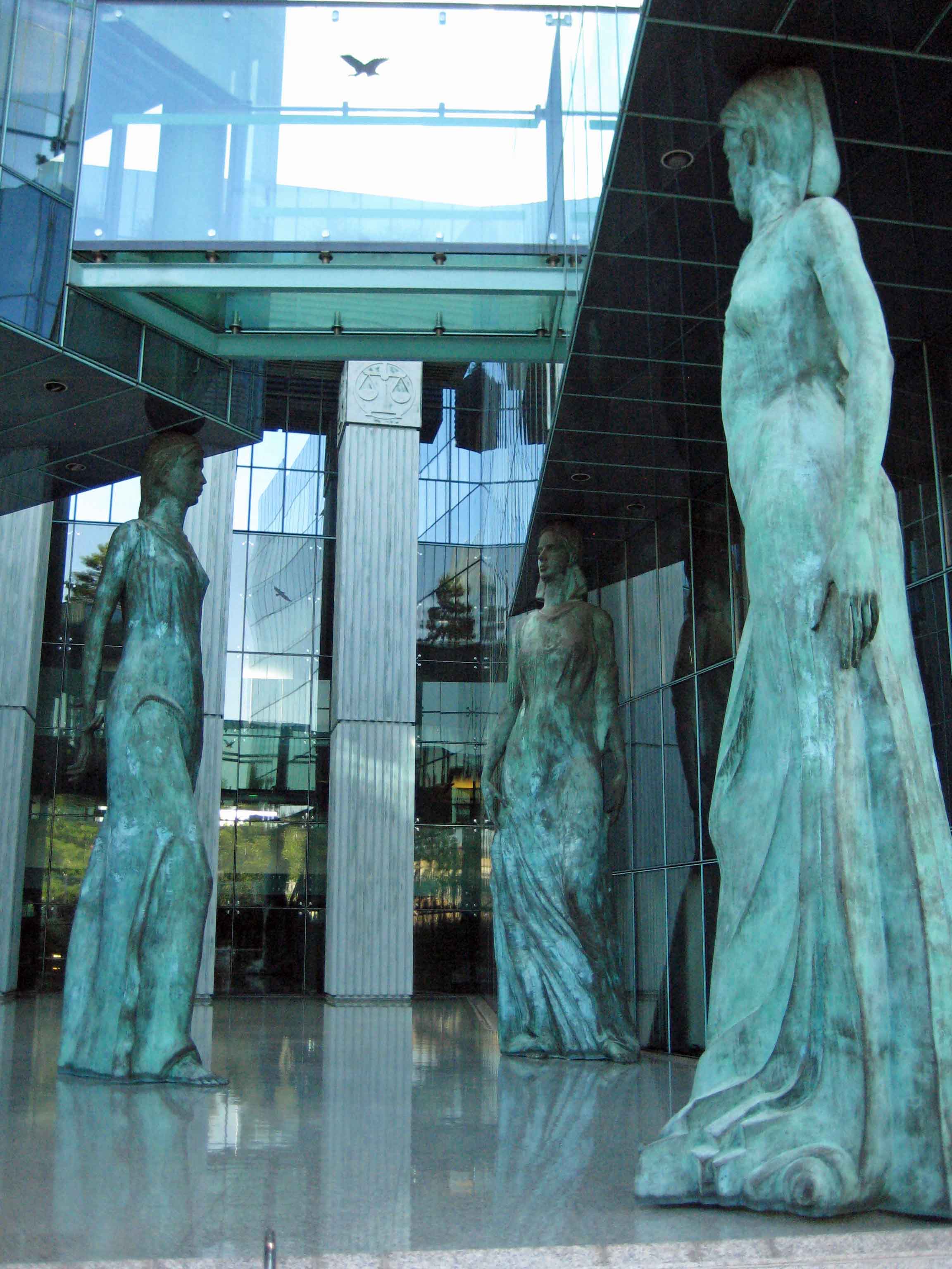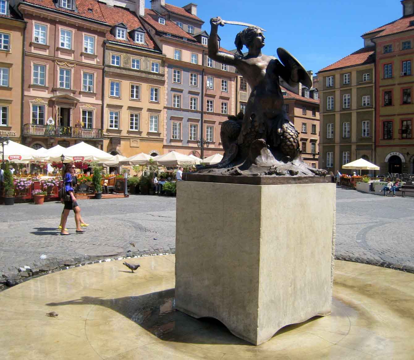 From the Old Town we walked into the more spacious New Town. It actually dates from the 14th century but was not really developed until the 18th. I had spotted that this was where we would find the monument to the Warsaw Uprising. The powerful, moving multi-figure monument nestles in the shade of the ultra-modern Supreme Court Building, part of which is held up by three slender caryatids standing in shallow water taking the weight of the glass construction on their heads.