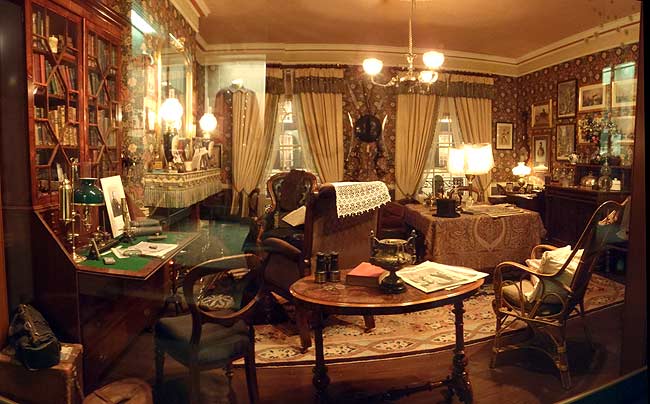 The exhibits obviously concentrate of on Sir Arthur and the Victorian era but, for me, the highlight of the exhibition is as faithful as possible a reconstruction of Sherlock Holmes and Dr. Watson's living room in 221B Baker Street, London.