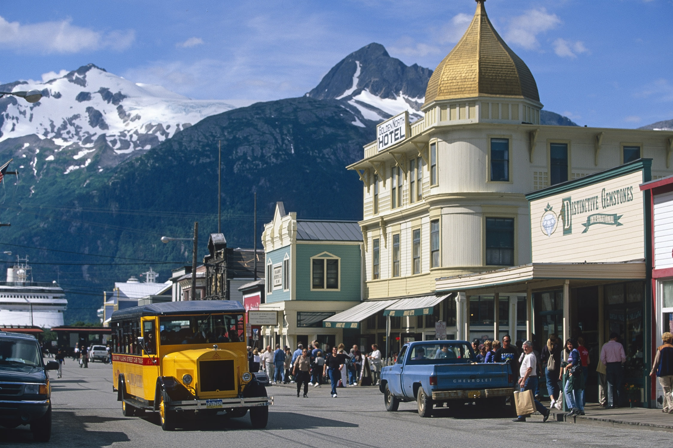 Skagway is where the miners first arrived to find they could only reach the Klondike by hiking over White Pass to the Yukon River. A tourist round trip is offered today on the White Pass & Yukon Route Railroad. The whole of downtown Skagway is designated as the Klondike National Historic Park and makes fascinating viewing.