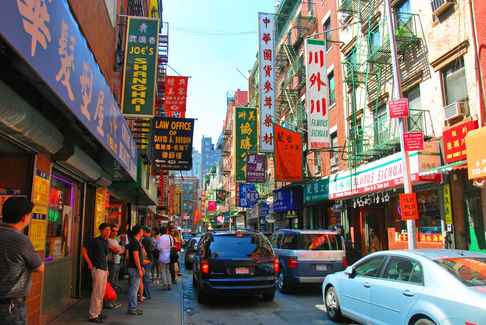 The five boroughs of New York City are Manhattan, the Bronx, Brooklyn, Queens and Staten Island. There is a Chinatown with Buddhist temples, Little Italy and Roman Catholic cathedrals, synagogues and Jewish communities amongst many, many others.