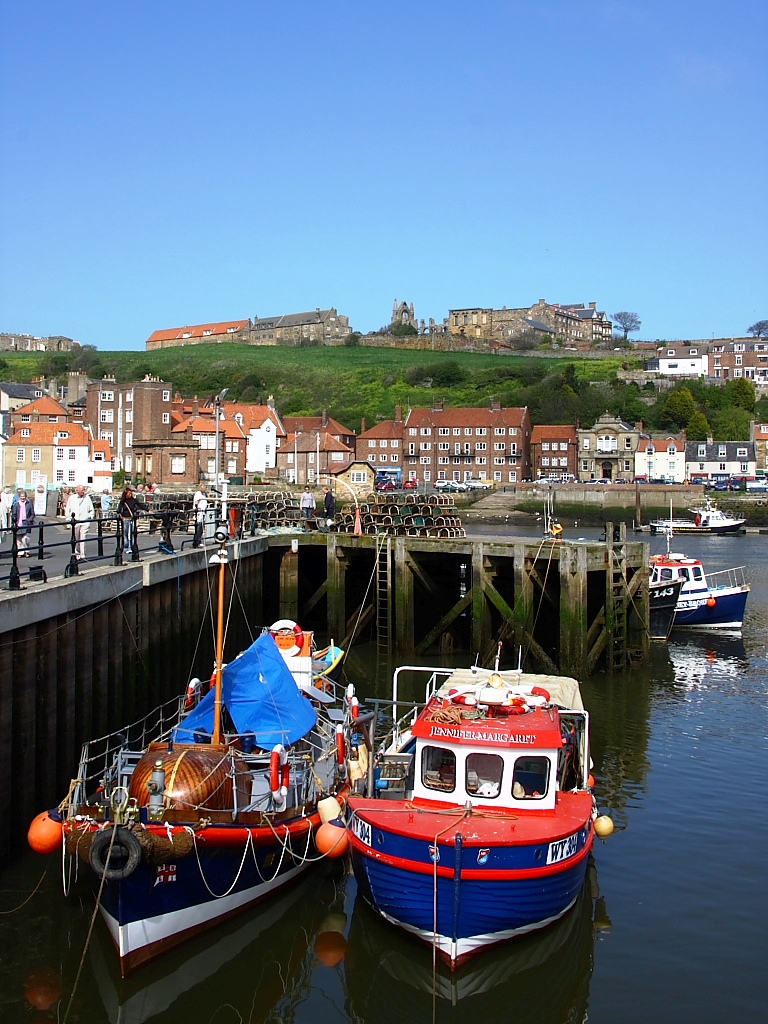 We stayed in an excellent self-catering cottage at Sandsend on the Raithwaite Hall Estate, conveniently close to Whitby, so were parked up and exploring bright and early in the morning. As I knew he would be, Barry was fascinated by the busy harbour at the mouth of the River Esk that helps to make it such an interesting town. It’s the sort of town I like – a historic working town where real people live and work rather than a chocolate-box pretty kind of tourist haunt.