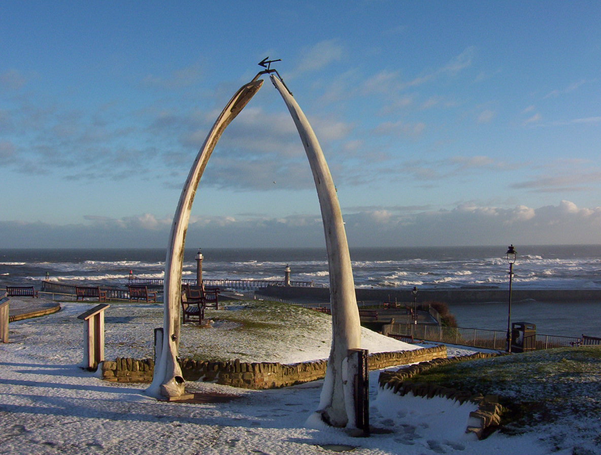 I had planned on climbing the 199 steps up to the Parish Church of St Mary and its churchyard,that partly inspired Bram Stoker to write his famous novel Dracula, and then to the ruined Abbey, where the 664 Synod had taken place, but arthritic hips made me change my mind so we drove up to inspect the ruins perched high on the East Cliff. We also drove over to the West Cliff to see the whalebone arch. The original whalebone can be seen at the Whitby Archives Heritage Centre. The Norwegians, I understand, presented the one we see today to the town in 1963. Also on the West Cliff is a statue of Captain James Cook, who was an apprentice in the town before making his epic voyages.